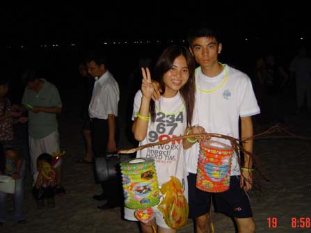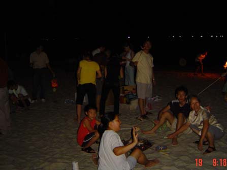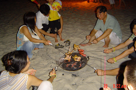 晚上我們開始了燒烤、沙灘篝火晚會,和燃放煙火。大家或三代同堂、或卿卿我我,好不愜意。