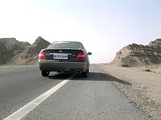 烽火臺之下就是干涸的大河床,三輛藍鳥•智尊依次下道,在河床上并駕齊驅,溫順之中的野性也被煥發(fā)了出來。此后直到抵達阿克蘇的界牌一段,由于路況良好,車隊始終保持著120km/h到180km/h的速度,在這種高速駕駛條件下,車輛的轉向自動加重,避免出現(xiàn)危險。超車時,發(fā)動機也能適時做出降擋反應,保證動力輸出的充足。