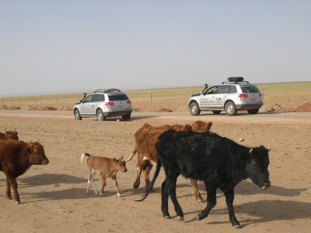 盡管季節和干旱并沒有讓草原完全返青,現代化的摩托車也早已經取代了千百年使用的蒙古馬,但低矮的丘陵串聯起來的廣闊曠野卻沒有改變。既然沒有機會縱馬持韁,那么就讓手中的方向盤替代當年的蒙古戰馬的韁繩吧。車隊遠離公路,用近100公里的時速飛快地駛過一座又一座山丘,奔向邊境口岸滿都拉。