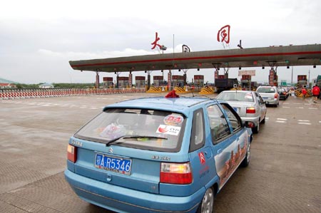 車載電臺真是好東西,不一會功夫,還有點陌生的隊友們就熟了起來。大家互相問候,互相介紹,才知道“風與鶴”是一對對挑戰充滿激情的老夫婦,這次開著他們自己的白色富康參加“夢想之旅”車隊,編號06。這對和藹健談的老夫婦,多年來就是開著這輛富康車,帶著他們心愛的小狗走遍了大半個中國。