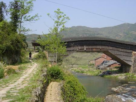 廊橋”顧名思義,就是有屋檐的橋。在泰順眾多的廊橋中,木拱橋以其梁木穿插的特殊而巧妙的結構形式,在中國橋梁史上具有極高的地位,這種結構,使較短的梁木構件,以剪刀叉穿插擠壓的形式,橫跨較寬的水面,十分穩固。猶如長虹橫跨兩岸,壯麗可觀。北宋名畫《清明上河圖》中的汴水虹橋,采用的就是這種木拱橋形式。其巧妙的結構,令人驚嘆!歷史上的泰順,村落分散,交通偏僻。人們出外行走十幾里都難以見到人煙。按照泰順先祖們的“交通規劃”,在相隔一定里程的大路(石砌路)邊上,要建上一座供人歇腳的風雨亭。而橋上建造屋檐,不但可以保護木材建造的橋梁免受日照雨淋的侵襲,而且起到風雨亭的作用。有的廊橋還有供人暫居的房間。泰順民間橋梁數量眾多,結構類型多種多樣。據《泰順縣交通志》記載,到1987年底,全縣現存橋累計958座,有“中國橋梁博物館”之稱,其中在世界橋梁史上占有重要地位的木拱廊橋6座。即泗溪姐妹橋、三魁薛宅橋、仙居橋、筱村文興橋、三條橋。在這廊橋的故鄉,我們盡情的拍攝。想要留住這些經歷了幾百年歷史變遷的見證。古時侯的交通要道,現在都已變成了遠離現代文明的地方,真是感嘆世事無常變化。當然也正是這樣,曾經在宋代風靡一時中原地區的木拱橋才得以閩浙交界的小縣城得以保存,以至于我們這些觀光客、甚至建筑學家、考古學家茅以升都來到了這個浙江經濟倒數第三的小縣城。