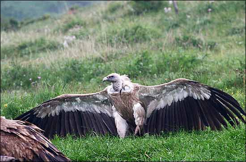 禿鷹大的展翅時約有一米半寬,一只大頭鷹帶頭俯沖下來。